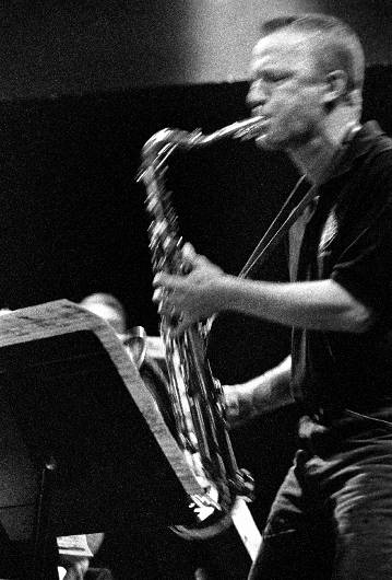 Barry Guy New Orchestra (GBR) - Mats Gustafsson (ts, ss) Festival Jazz a Mulhouse: Noumatrouff (F), August, 2002